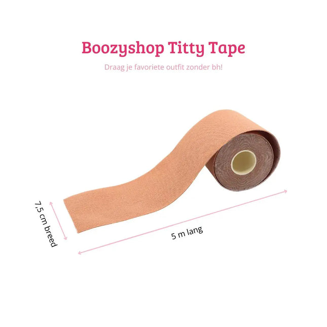 Of course, what cannot be missed is the Titty Tape! What makes the Boozyshop Titty Tape so unique is that it is ultra stretchy, so the Titty tape can be used for every cup size. With the Boozyshop Titty Tape you can cover, lift or flatten your breasts.