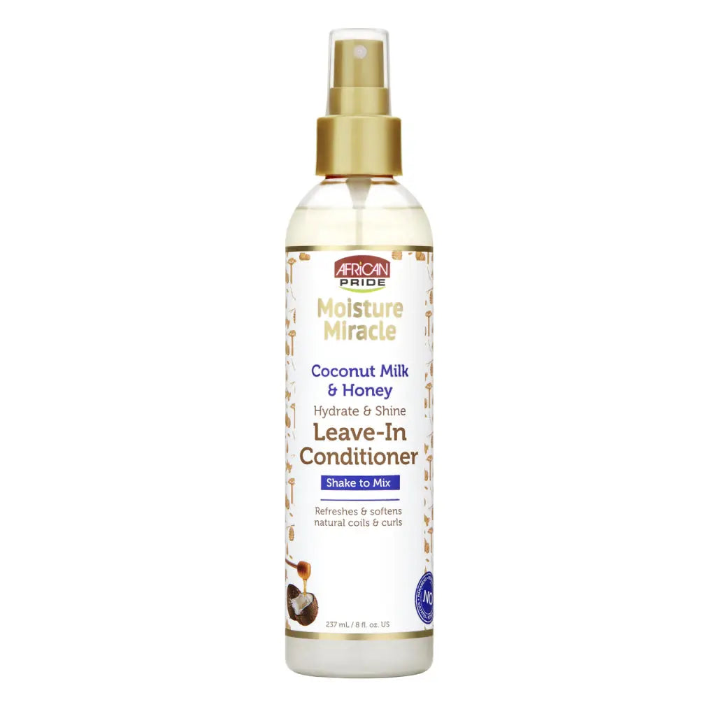 The African Pride Moisture Miracle Leave-In Conditioner Spray is your quick fix for thirsty, lifeless curls in need of a boost. This convenient spray is ideal for daily use and perfect for when your hair needs a little extra hydration and care.