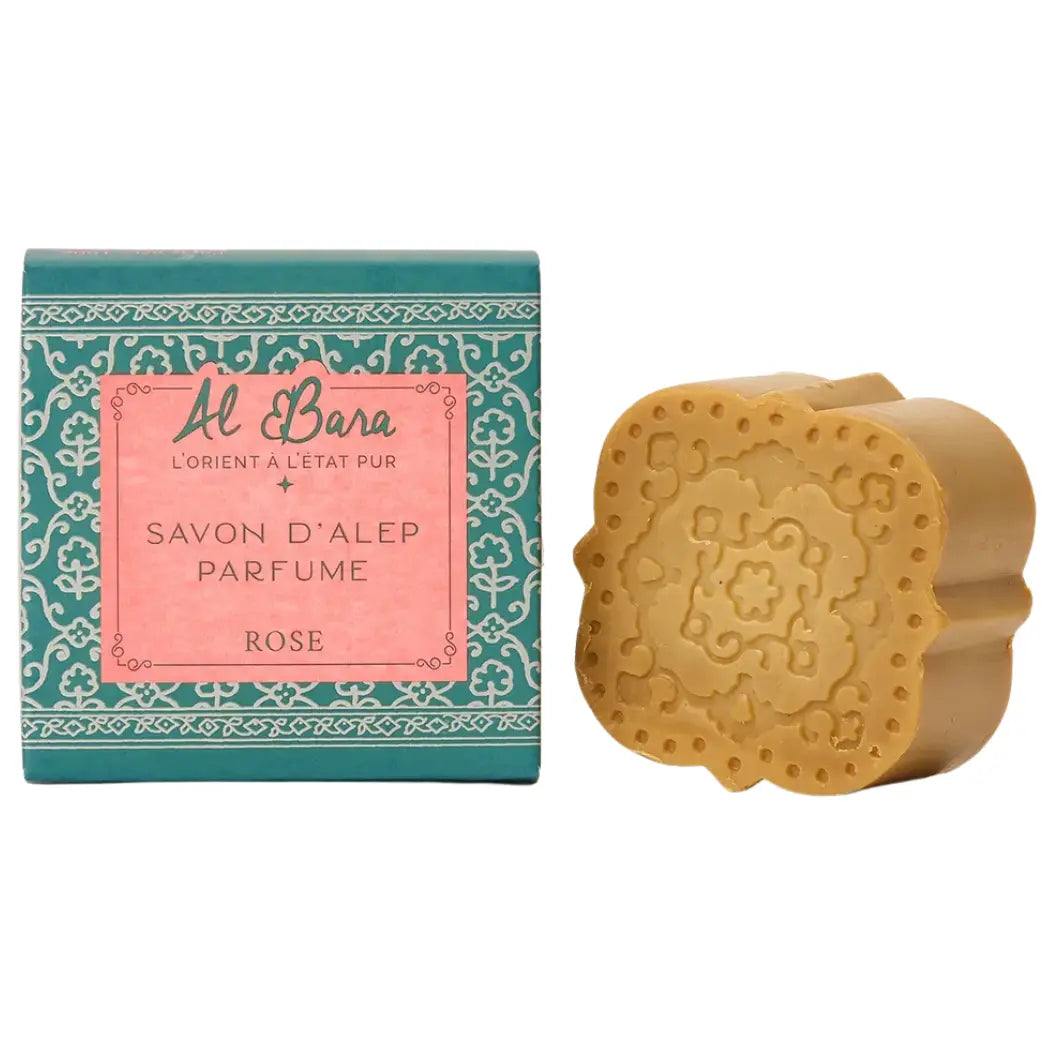 The Al Bara Aleppo Zeep Rozenbloesem is pure softness wrapped in an elegant bar of soap. With its refined floral scent and beautifully engraved oriental motifs, this soap is a tribute to the traditional craftsmanship of Aleppo’s master soap makers.