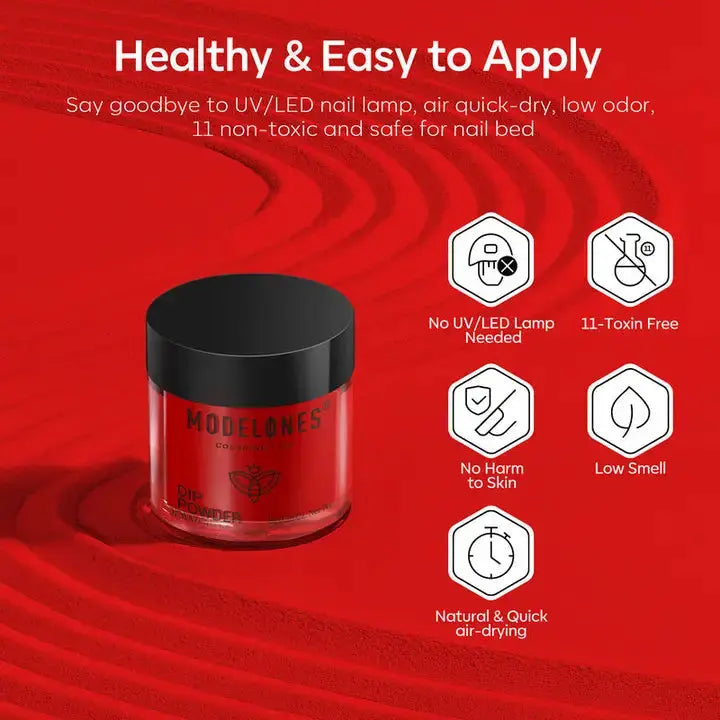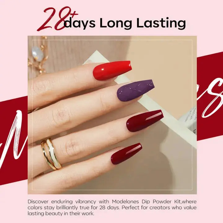 The Modelones All-In-One Dip Powder Kit Blood Plum is a complete 19-piece set that lets you create beautiful deep and glossy dip powder manicures in no time. The rich Blood Plum shades range from creamy to sparkling glitter so you can achieve any look from chic and classic to bold and glam. With easy application and quick drying this kit is perfect for both beginners and experienced nail lovers.