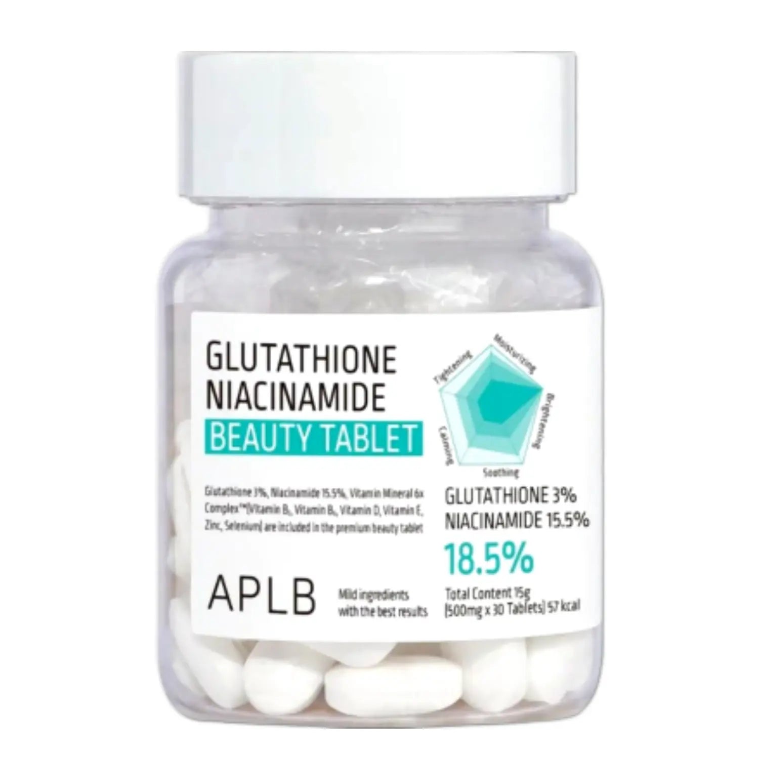 The APLB Glutathione Niacinamide Beauty Tablet is your daily antioxidant boost from within. This dietary supplement is developed to support your skin in achieving a brighter, fresher appearance and to help protect your body against free radicals. The formula contains Glutathione, known for its antioxidant properties and its supportive role in reducing melanin accumulation in the body.