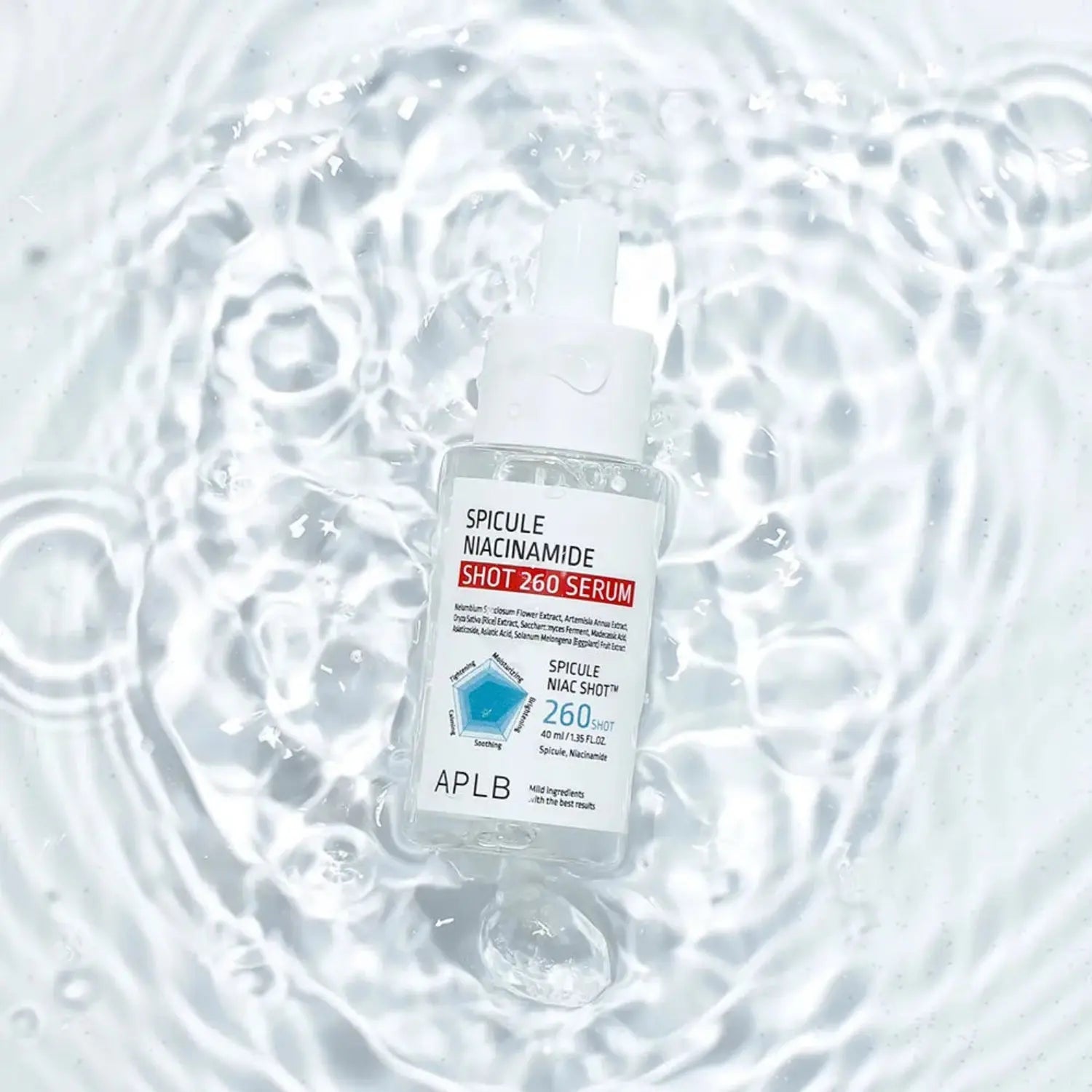 The APLB Spicule Niacinamide Shot 260 Serum is your daily skin reset for a fresh, even, and healthy glow. This gentle, fragrance-free formula with 260 shots of niacinamide brightens the complexion, refines pores, and restores the skin’s moisture balance. Perfect for anyone looking for hydration, soothing, and a beautiful glow, without irritation.