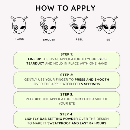 - Press the oval applicator onto your eyelid with the pigment side facing your skin.