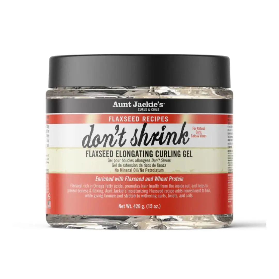 The Aunt Jackie's Flaxseed Don't Shrink Curling Gel is the secret to beautiful curls! This innovative gel combines the benefits of flaxseed, shea butter and extra virgin olive oil to nourish, lengthen and define your curls without shrinking them.