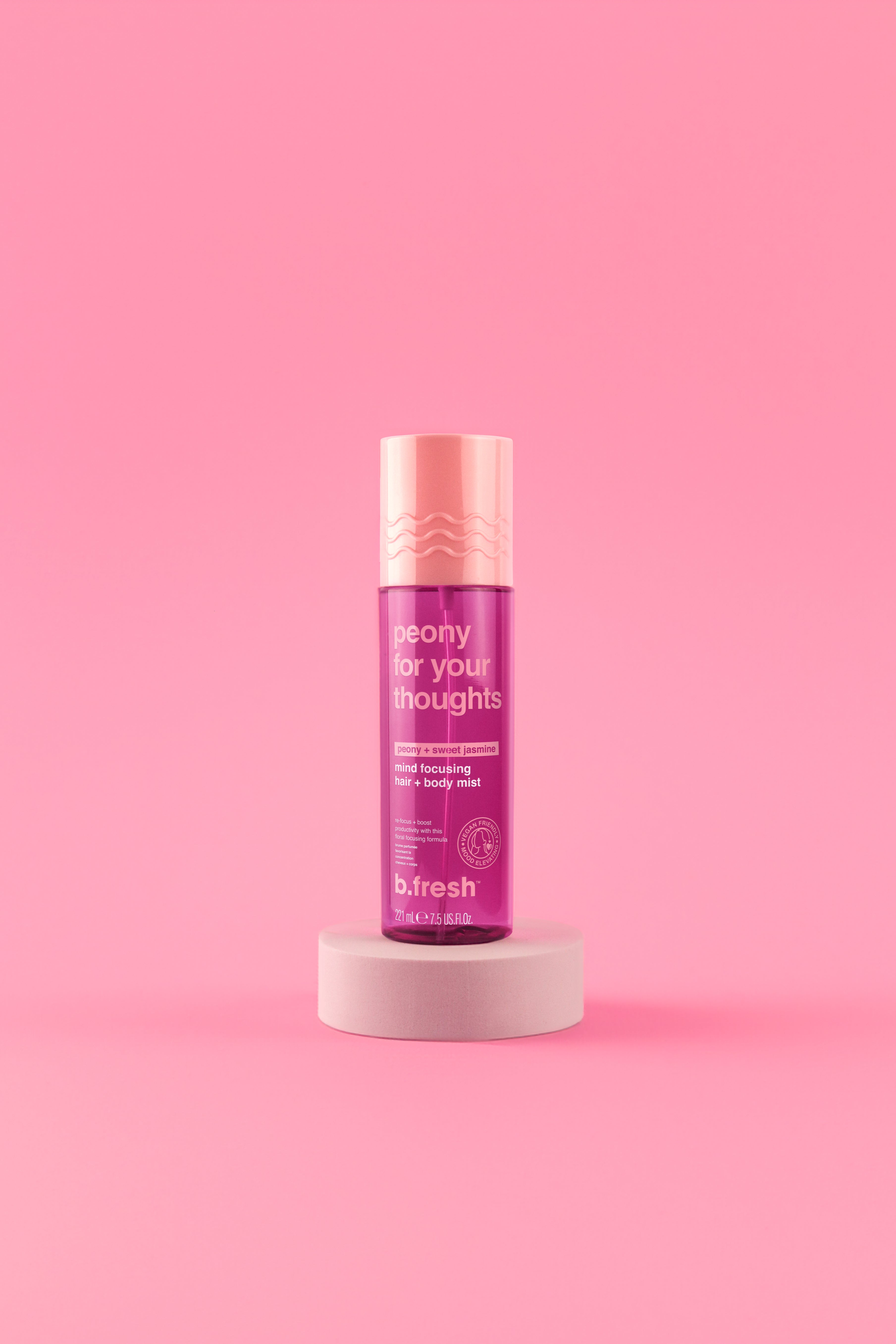 The B.fresh Peony For Your Thoughts is a dreamy hair + body mist that transports you to a blooming flower field! This refreshing mist is enriched with peony, rose, and jasmine extracts for a soft scent that instantly lifts your mood.