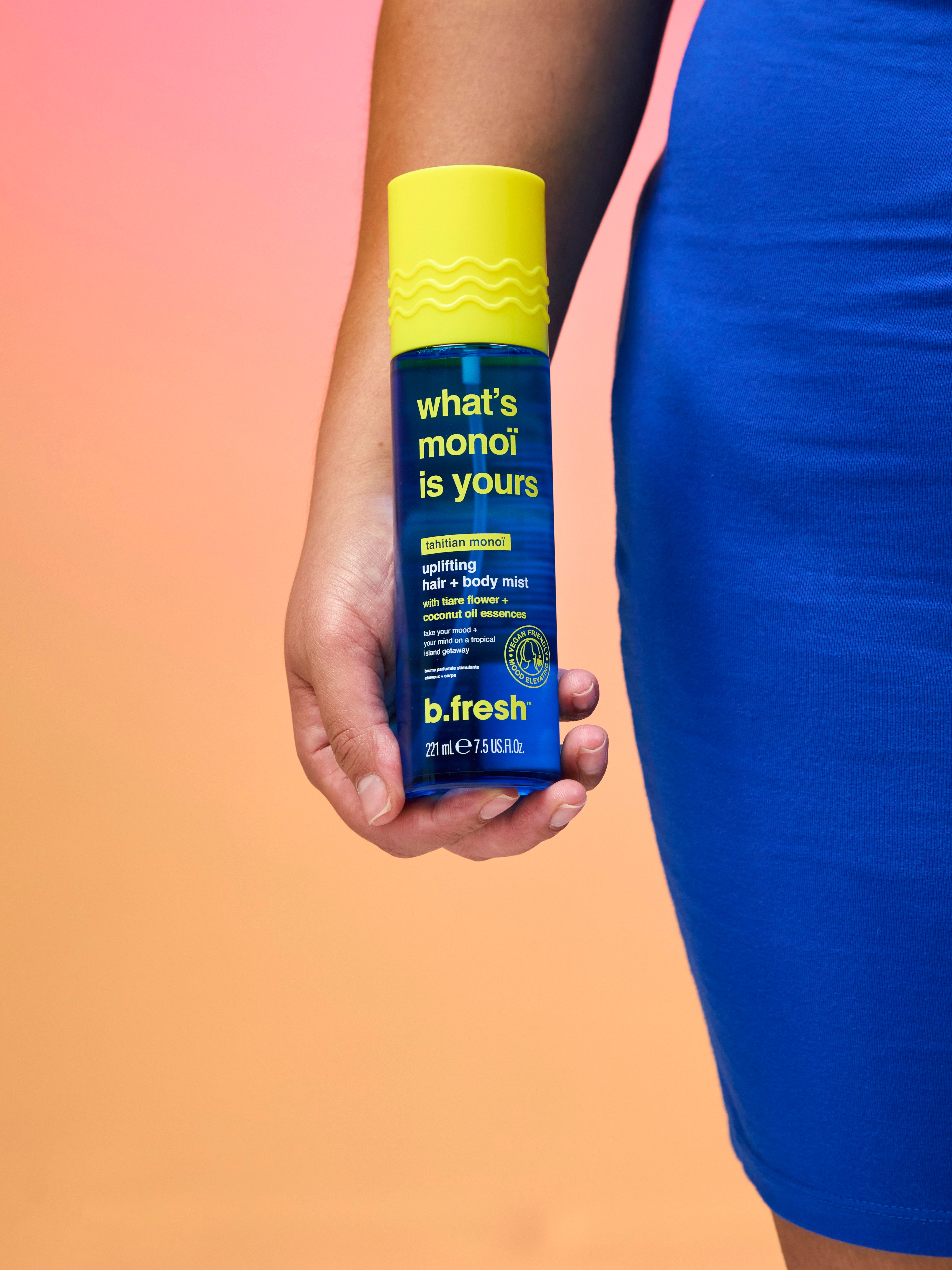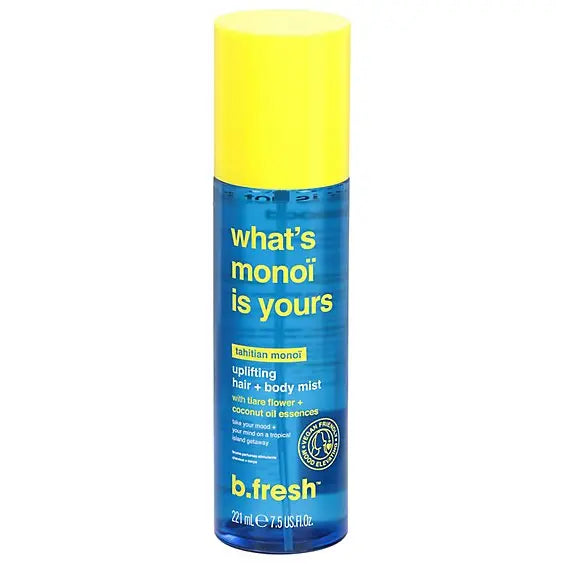 The B.fresh What's Monoi Is Yours is the ultimate hair + body mist that transports you to the sun-drenched beaches of Tahiti with every spray! This exotic mist is enriched with tiare flower and coconut extract, delivering an irresistible monoi scent that instantly gives you vacation vibes.