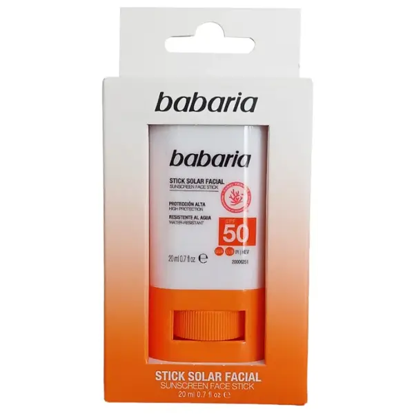 The Babaria Face Sun Stick SPF 50 is your compact and powerful sun protection for on-the-go. This stick is specially developed for sensitive areas like the face, lips, nose, ears, and even tattoos. Thanks to the combination of mineral and chemical filters, it offers high protection against UVA, UVB, and infrared rays, while aloe vera and shea butter hydrate and care for your skin.