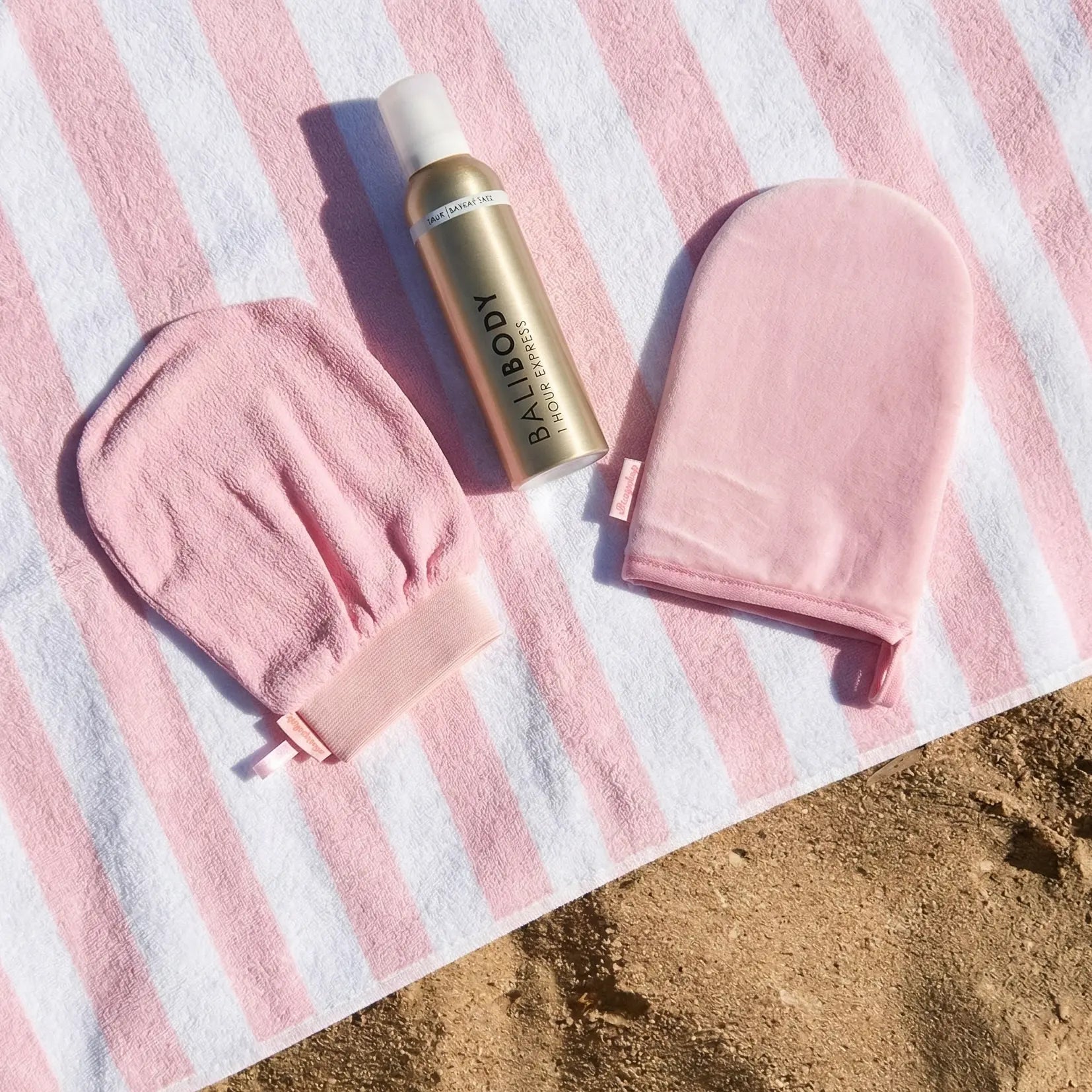 - Apply a small amount of Bali Body 1 Hour Express Tan onto the Boozyshop Tanning Mitt.