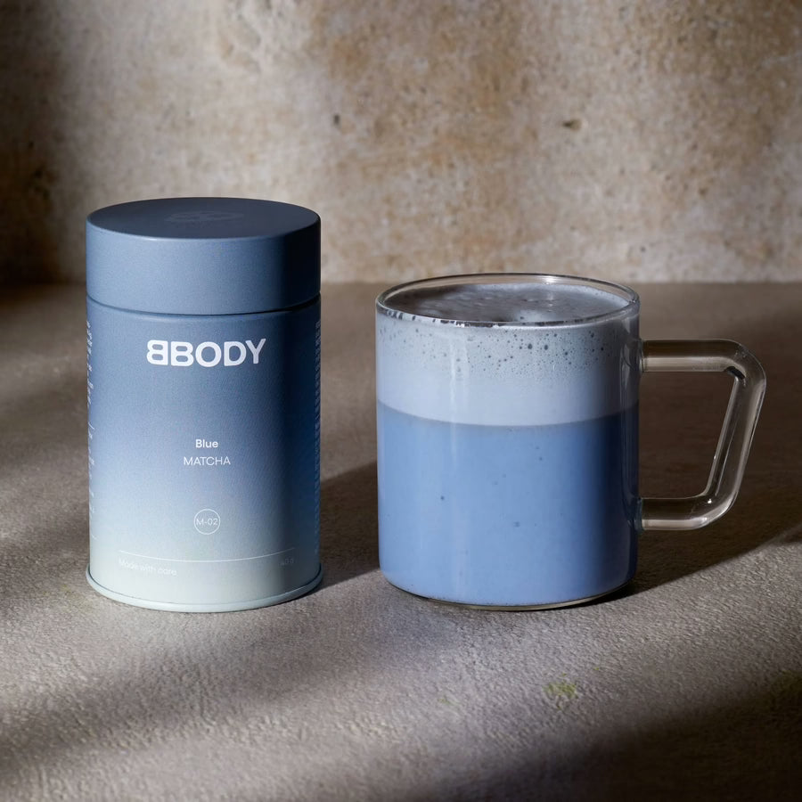 The Bbody Blue Evening Matcha is ideal for making a tea or latte that soothes your body and reduces unhealthy snacking needs.