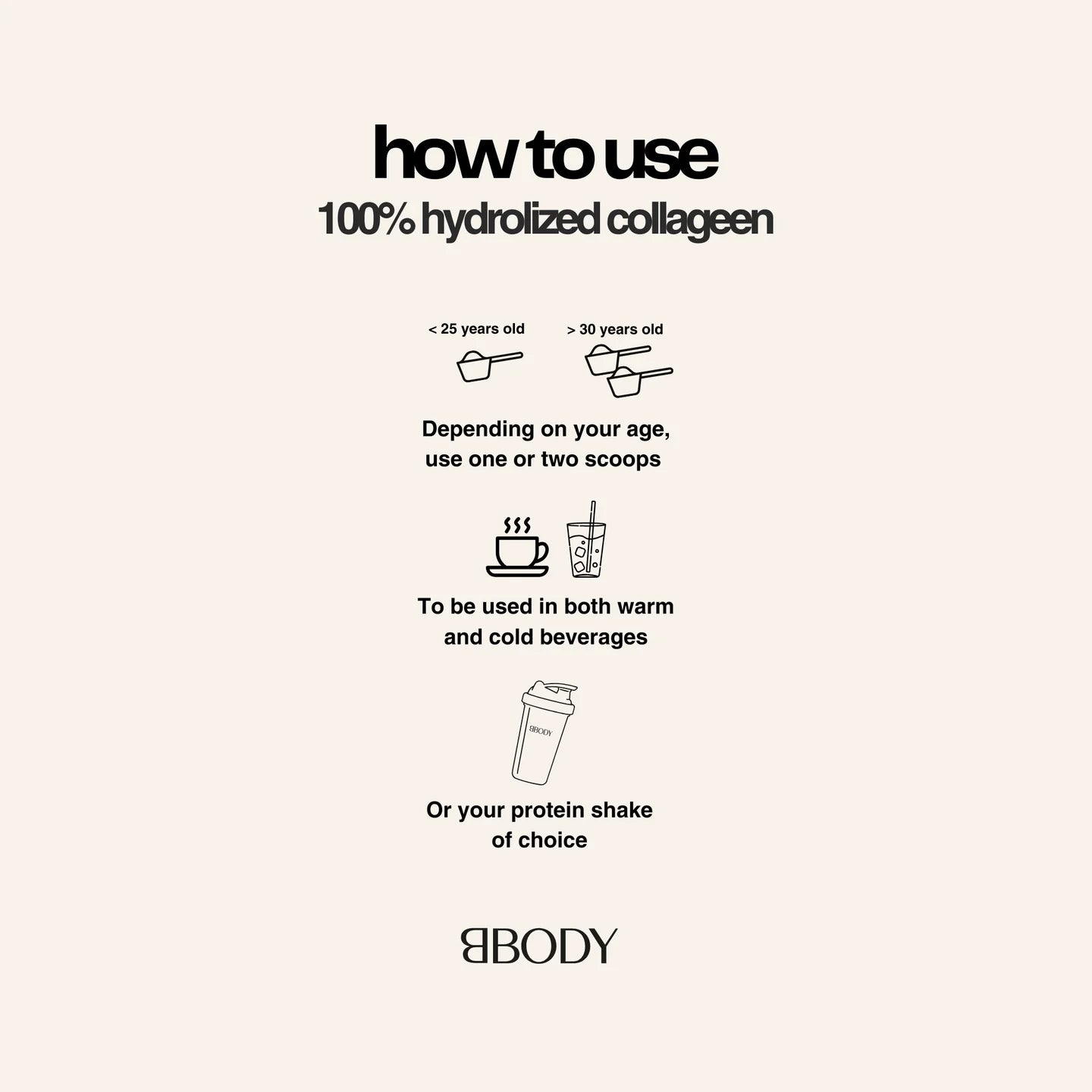 The Bbody Tripeptide Collagen is a real boost for glowing skin! Say goodbye to dull skin, lifeless hair and brittle nails with our superstar, 100% hydrolyzed marine collagen.