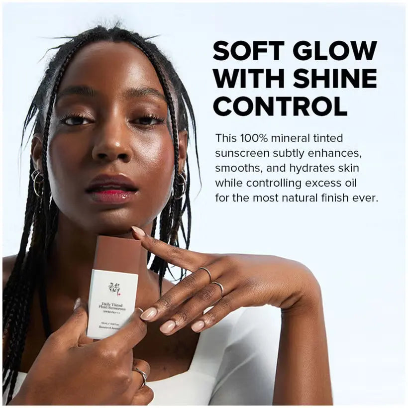 The Beauty Of Joseon Daily Tinted Fluid Sunscreen SPF protects your skin from the sun while your complexion looks naturally even and radiant. This lightweight tinted sunscreen combines skincare, sun protection and subtle coverage in one simple step.