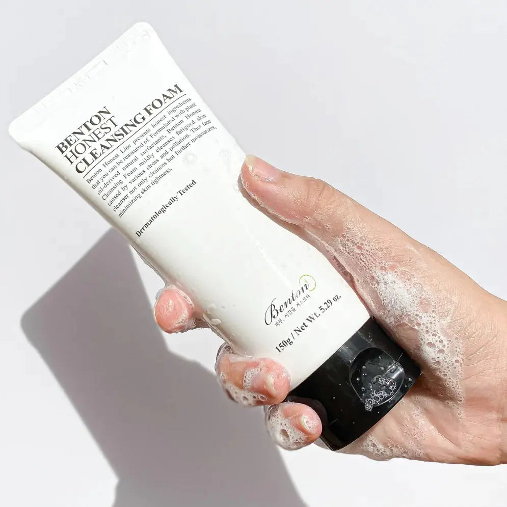 The Benton Honest Cleansing Foam has been specially developed to thoroughly clean and care for your skin without drying it out. With its thoughtful blend of powerful ingredients, including Portulaca Oleracea Extract, Camellia Sinensis Extract and Centella Asiatica Extract, it not only provides deep cleansing, but also a caring and protective effect for your skin!
