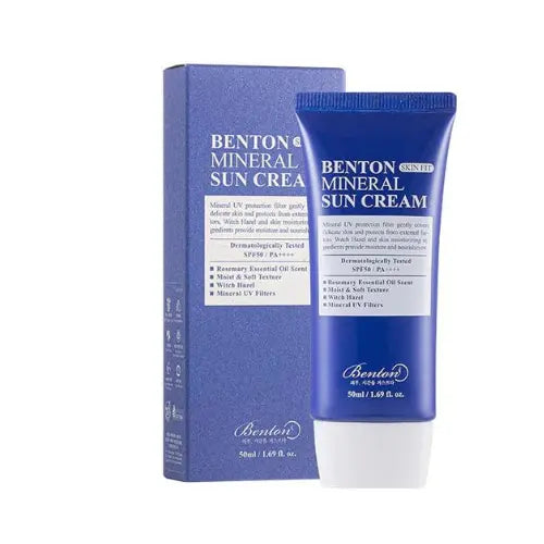 The Benton Skin Fit Mineral Sun Cream is a light weight mineral sunscreen with a factor of 50, which is suitable for all skin types. It protects you against both UVA and UVB radiation and has a cooling and calming effect.