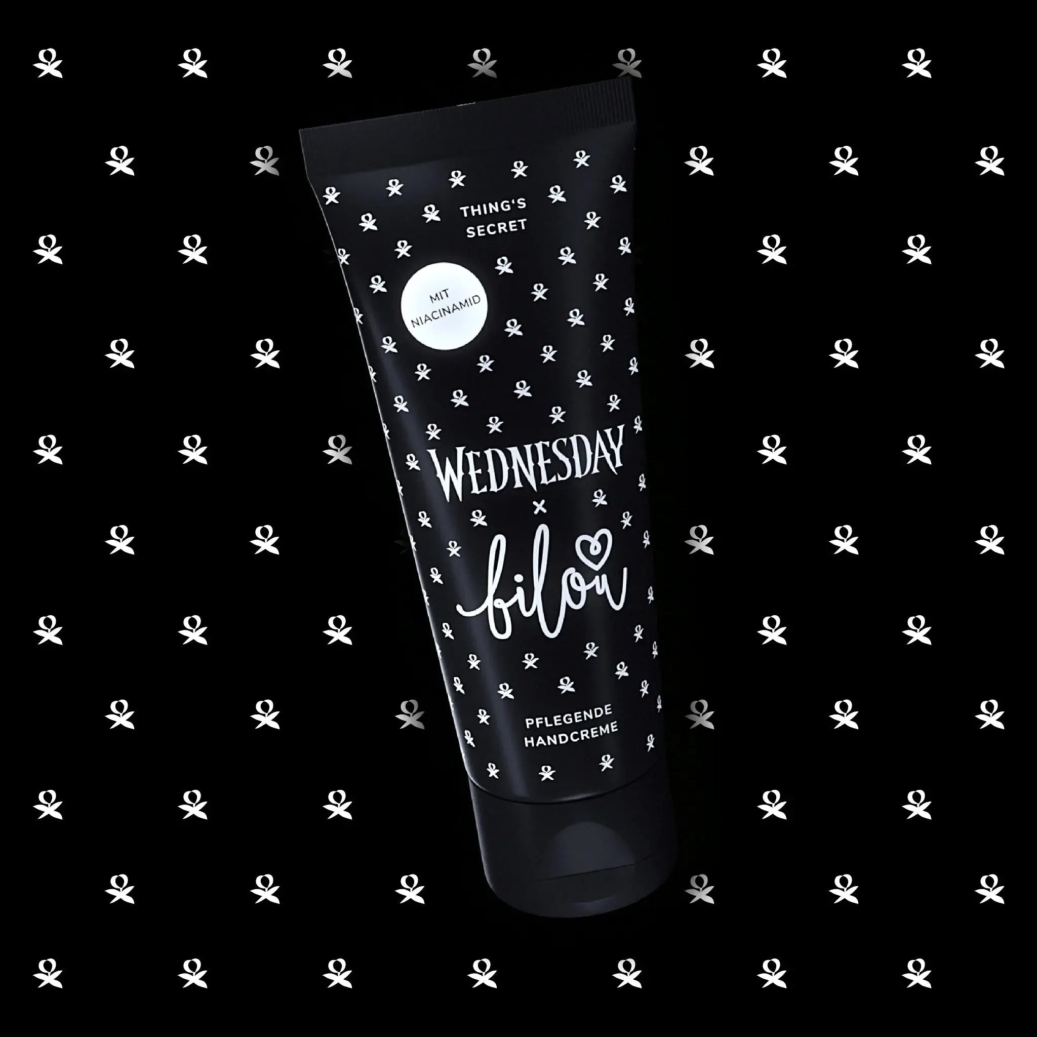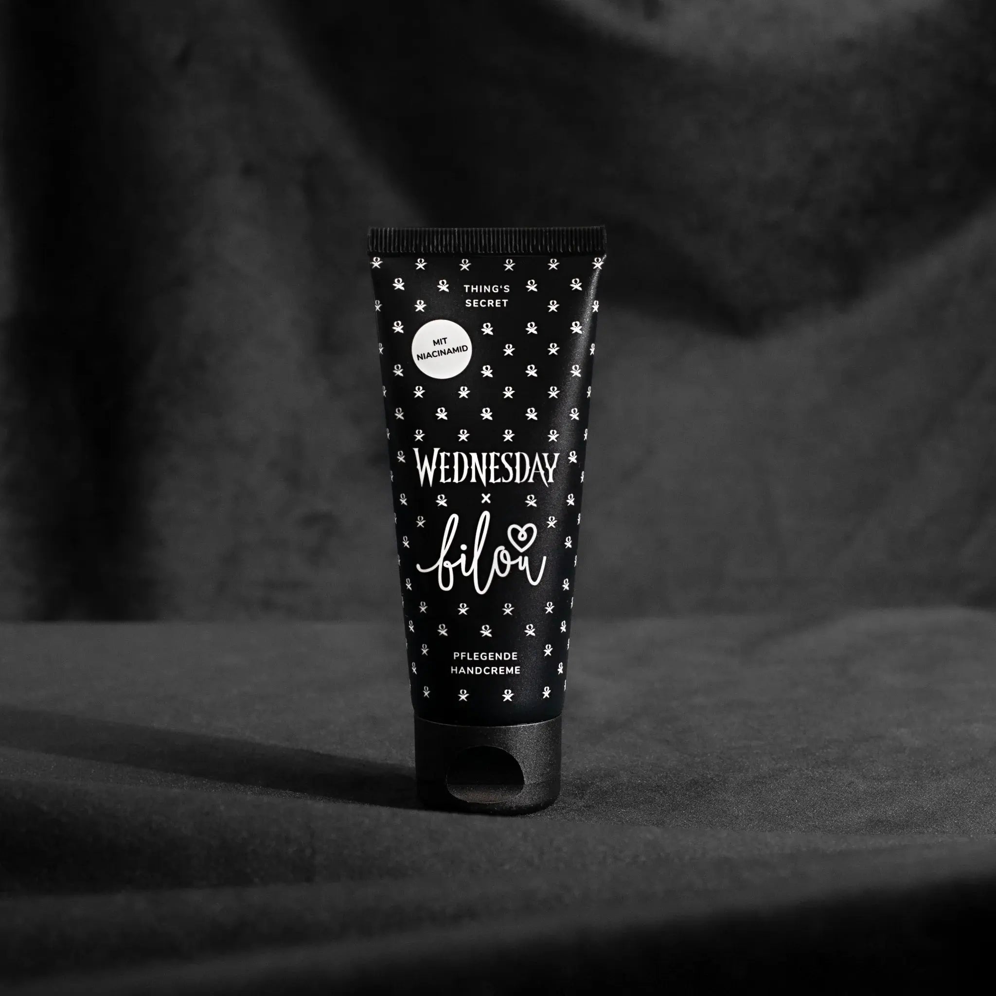 The Bilou x Wednesday Handcream Thing's Secret is the must-have for mysterious beauties who love an unexpected twist. This limited edition hand cream is inspired by the iconic vibe of Wednesday and is full of character: just like you. The scent? A magical mix of dark amber, juicy red apple, and tropical passionflower. Intense, seductive, and totally unique.