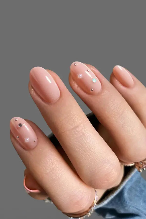 nude base with studs and pearl accents