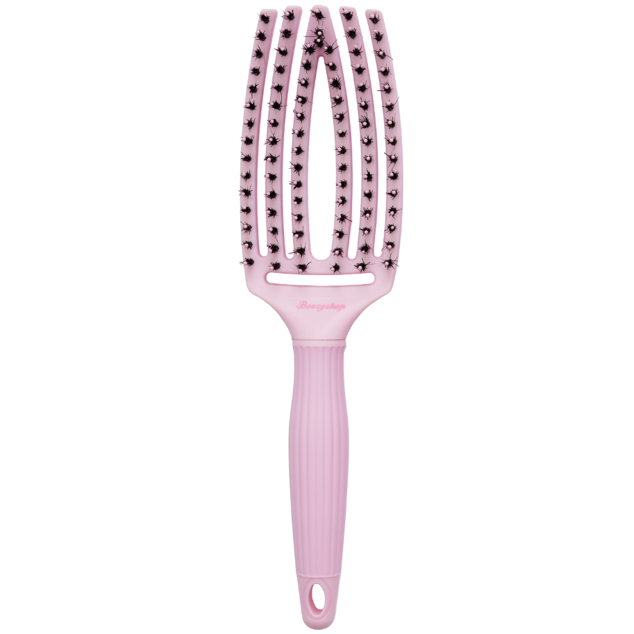 The Boozyshop Fingerhair Brush is the affordable dupe of the popular FingerBrush, but completely in Boozy style! This black edition with a medium size combines nylon bristles and boar hair for the best of both worlds: gentle detangling and ultimate shine. Thanks to the unique, hand-shaped design, the brush massages your scalp while you brush, as if you're getting a mini-spa treatment right at home!