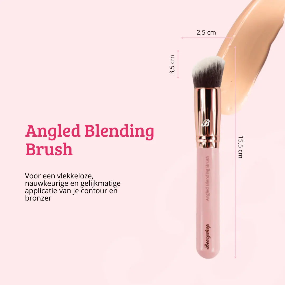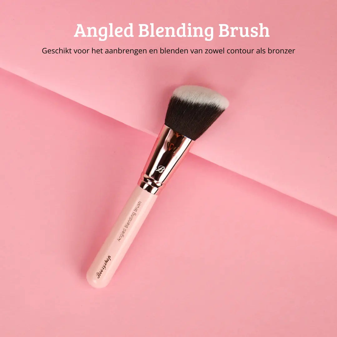The Boozyshop Pink & Rose Gold Angled Blending Brush is specially designed to apply your contour and blush with precision. This brush follows the natural contours of your face, allowing you to create that beautifully chiseled look effortlessly.