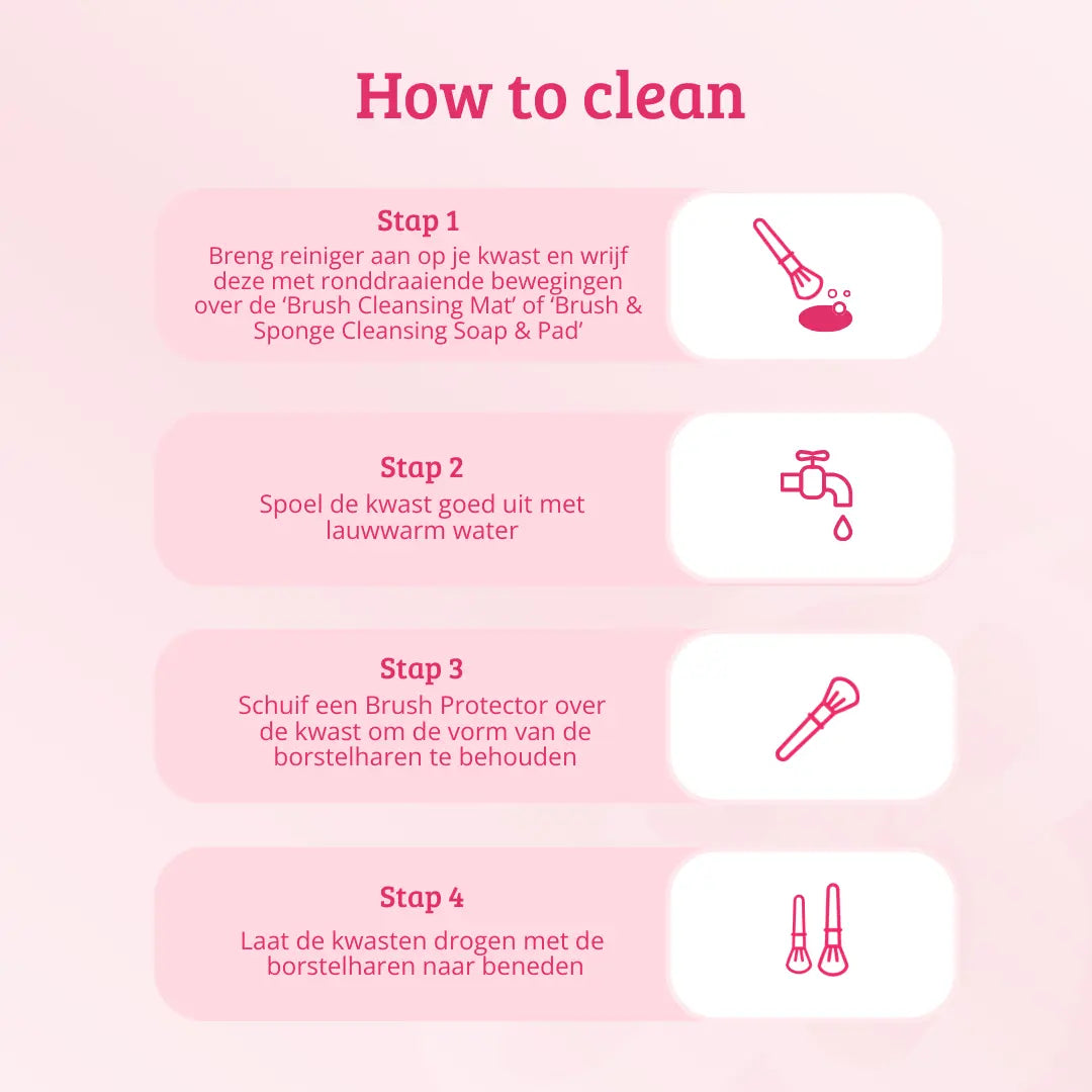 Cleaning your makeup brushes is essential to keep your skin healthy and extend the life of your brushes. We recommend thoroughly cleaning your brushes at least once a week.