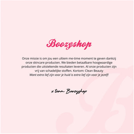 At Boozyshop, we not only care about your skin but also the environment and animal welfare. Our products are 100% vegan and cruelty-free. Quality and affordability with respect for people, animals, and the planet are central to our range.