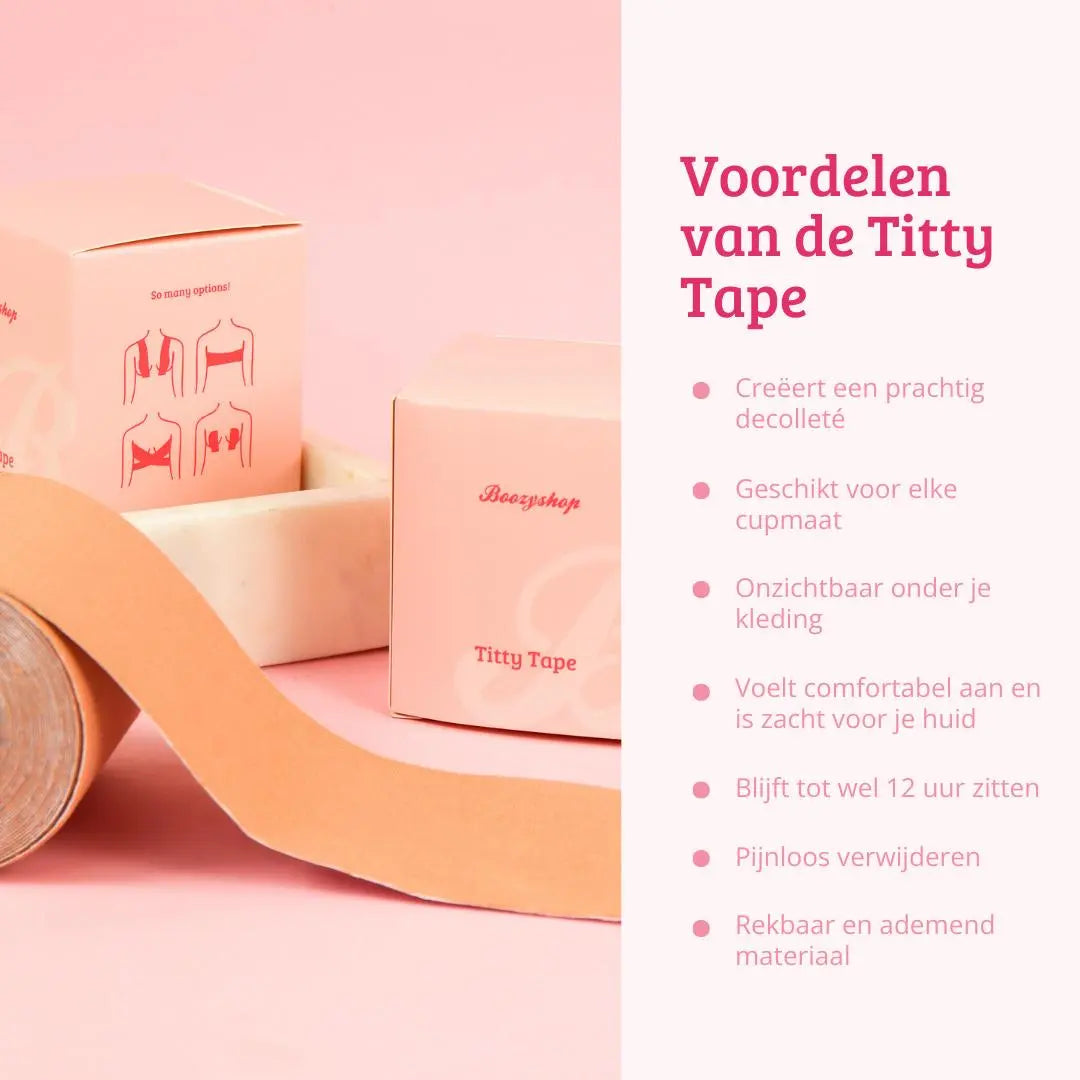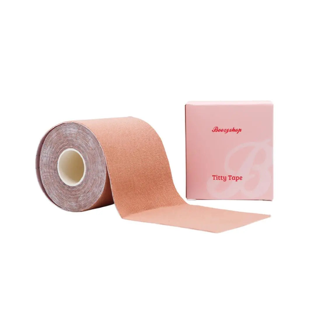 With Boozyshop Titty Tape you can wear your favorite outfit without a bra! Our Titty Tape is designed to lift your breasts without the hassle of a bra or bralette. You can stick this tape in any shape you want and it is invisible under your clothes! Whether you're wearing a plunging neckline, a backless dress or a strapless top, Titty Tape will keep everything in place so you no longer have to worry about bra straps peeking out from under that pretty top.