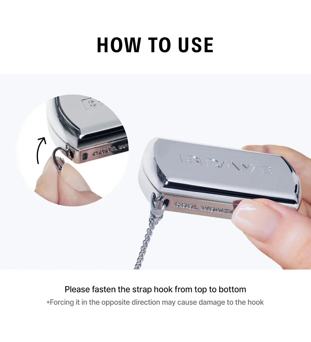 With its adjustable length, you can wear it as a crossbody strap, bold chain necklace or layered statement piece. The 2-way adjustable feature makes switching styles easy, while the bold silver-tone finish instantly adds edge to any outfit. Note: always attach the strap in the correct direction and avoid pulling too hard to prevent damage to the hooks.