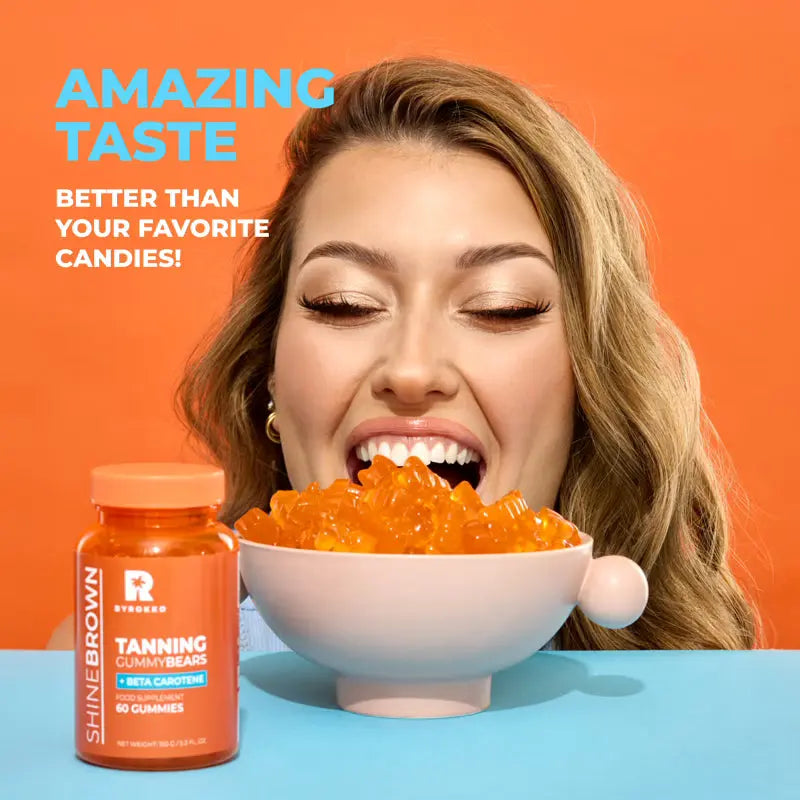 The ByRokko Beta Carotene Tanning Gummies are your secret glow-up from within. These fruity gummy bears help prepare your skin, boost your tan, and help it last longer, so you can hold on to that sun-kissed look even longer.