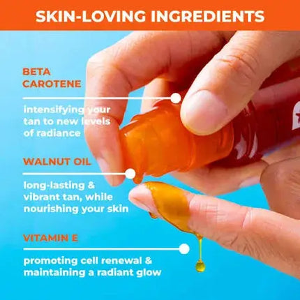 The powerful blend of highly concentrated carrot oil and natural oils stimulates your skin to tan, while beta-carotene helps deepen and prolong your tan. And bonus: the formula is vegan, paraben-free and non-sticky.