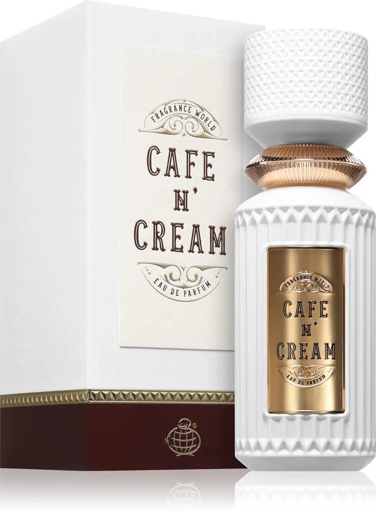 Fragrance World Cafe N'Cream Eau De Parfum is like your favorite dessert in perfume form. Think of a warm cappuccino with a touch of amaretto, creamy vanilla ice cream, and a crunchy cookie on the side. This scent is gourmand heaven – perfect for anyone who loves sweet, warm, and cozy vibes.