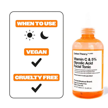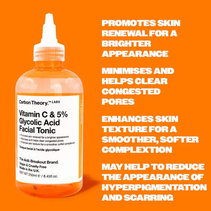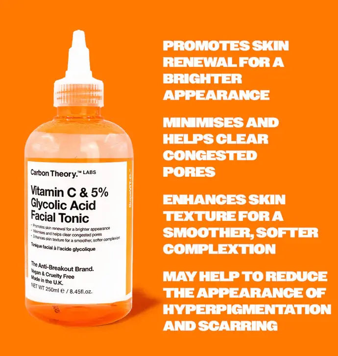 The Carbon Theory Supa Vitamin C Facial Tonic is your savior for radiant, renewed skin! This powerful tonic with 5% glycolic acid and vitamin C is specially formulated to target post-breakout pigmentation and scarring.