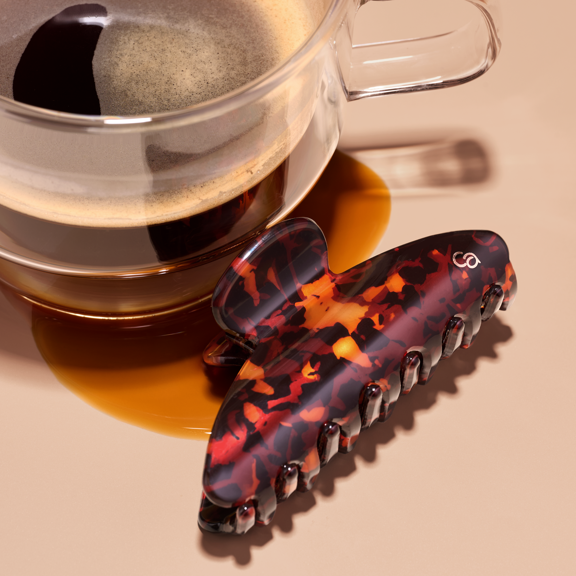 The catrice espresso yourself haarclip C01 crema couture is the perfect mix of style and function, with a playful nod to your favorite cup of coffee. The glossy marbled finish in rich brown tones adds a chic touch to any look, while the curved shape comfortably conforms to your head. Whether you're going for a messy bun or a sleek twist, this clip keeps your hair effortlessly in place.