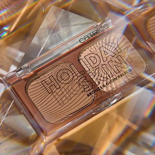 With the Catrice Holiday Skin Bronze & Glow Palette 010 Out of Office you have a summery glow in no time. This palette contains both a beautiful highlighter and bronzer. Both have a light, intensely soft texture that applies smoothly and is easy to blend. Get that bronzed summer look!