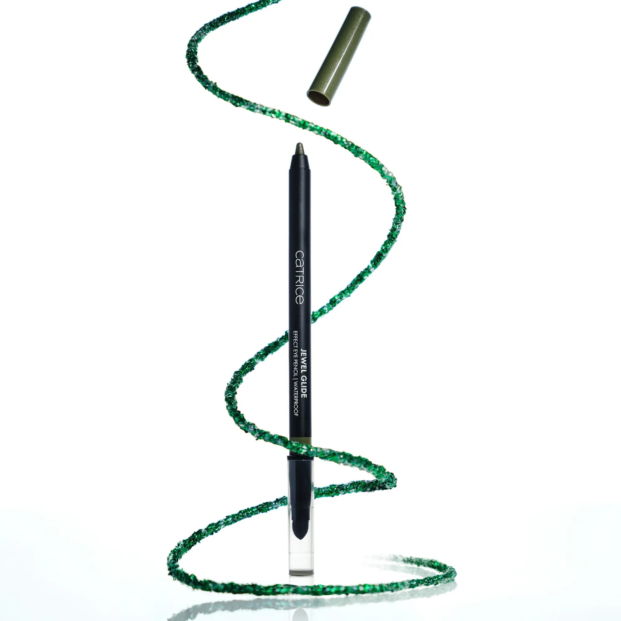 The Catrice Jewel Glide Effect Eye Pencil 040 Golden Jade brings mystery and glamour together in one stroke. The deep metallic green shade with golden shimmer creates a bold and sparkling eye look that catches the eye instantly. Perfect for adding a subtle shine or a dramatic cat eye.