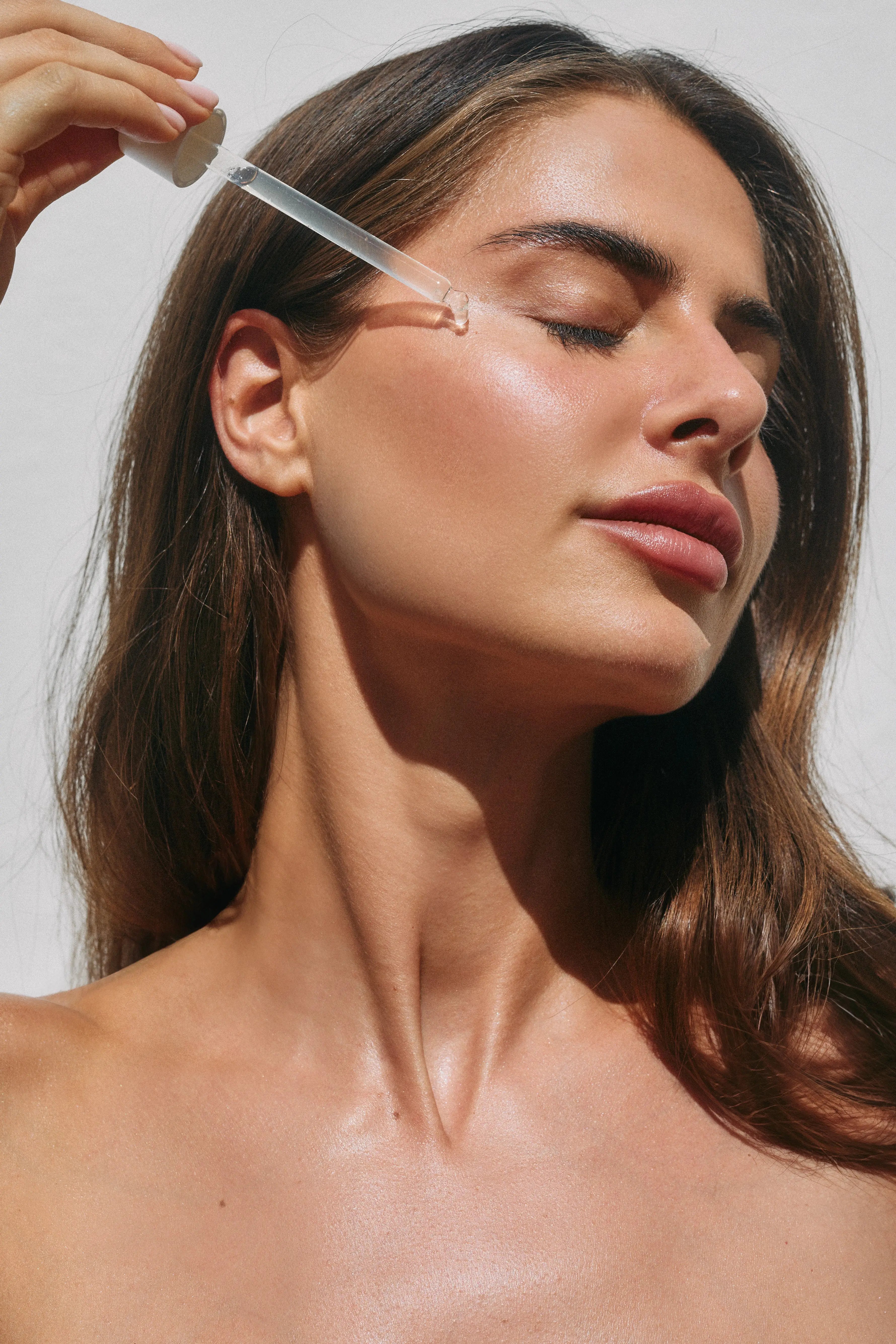 - Apply at least one full dropper (depending on your skin tone) to face, décolleté or body.