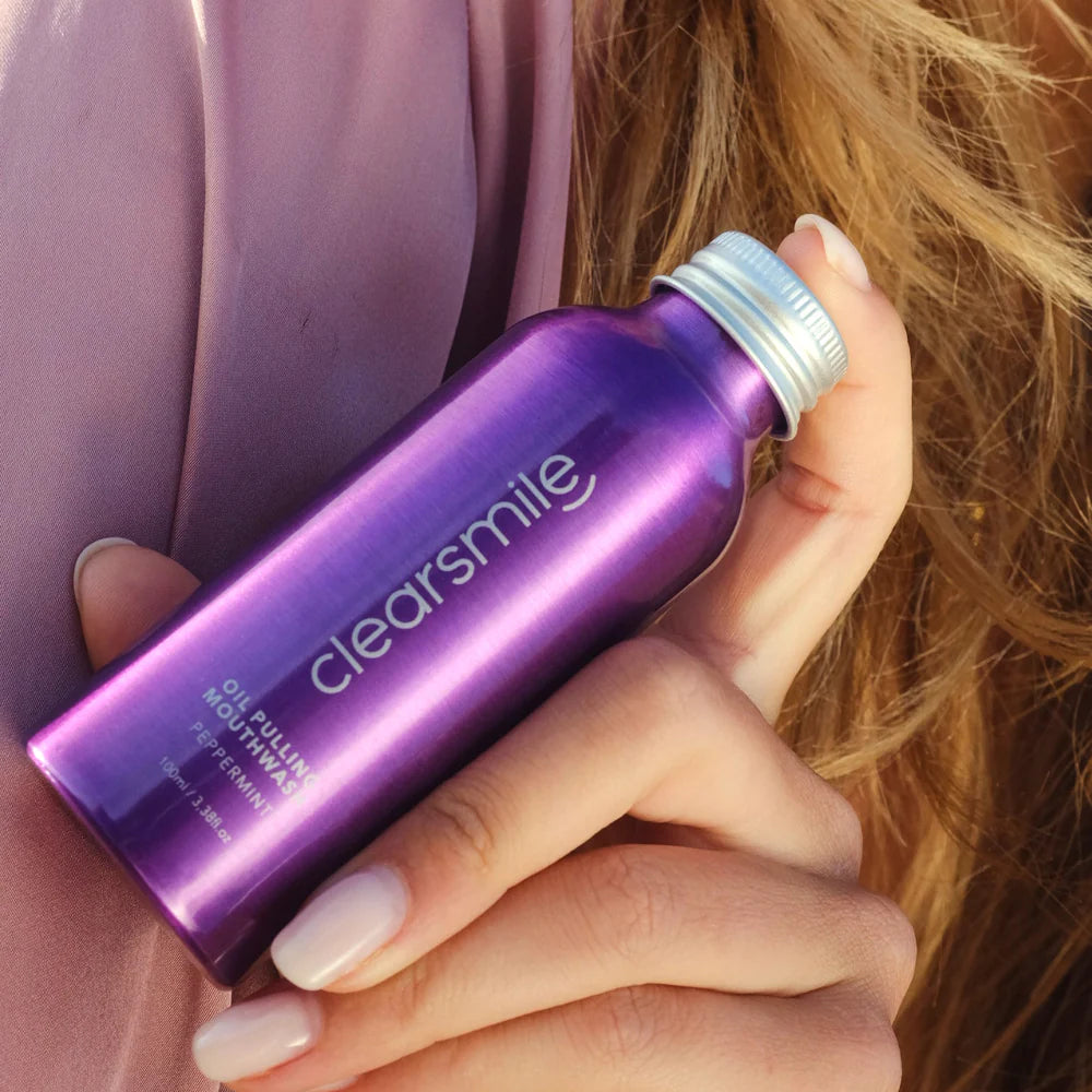 The Clearsmile Oil Pulling Mouthwater is your natural booster for a healthier mouth and long-lasting fresh breath. This mouth oil with a refreshing peppermint flavor effectively removes bacteria, supports healthy gums, and helps reduce plaque – all in a completely natural way.
