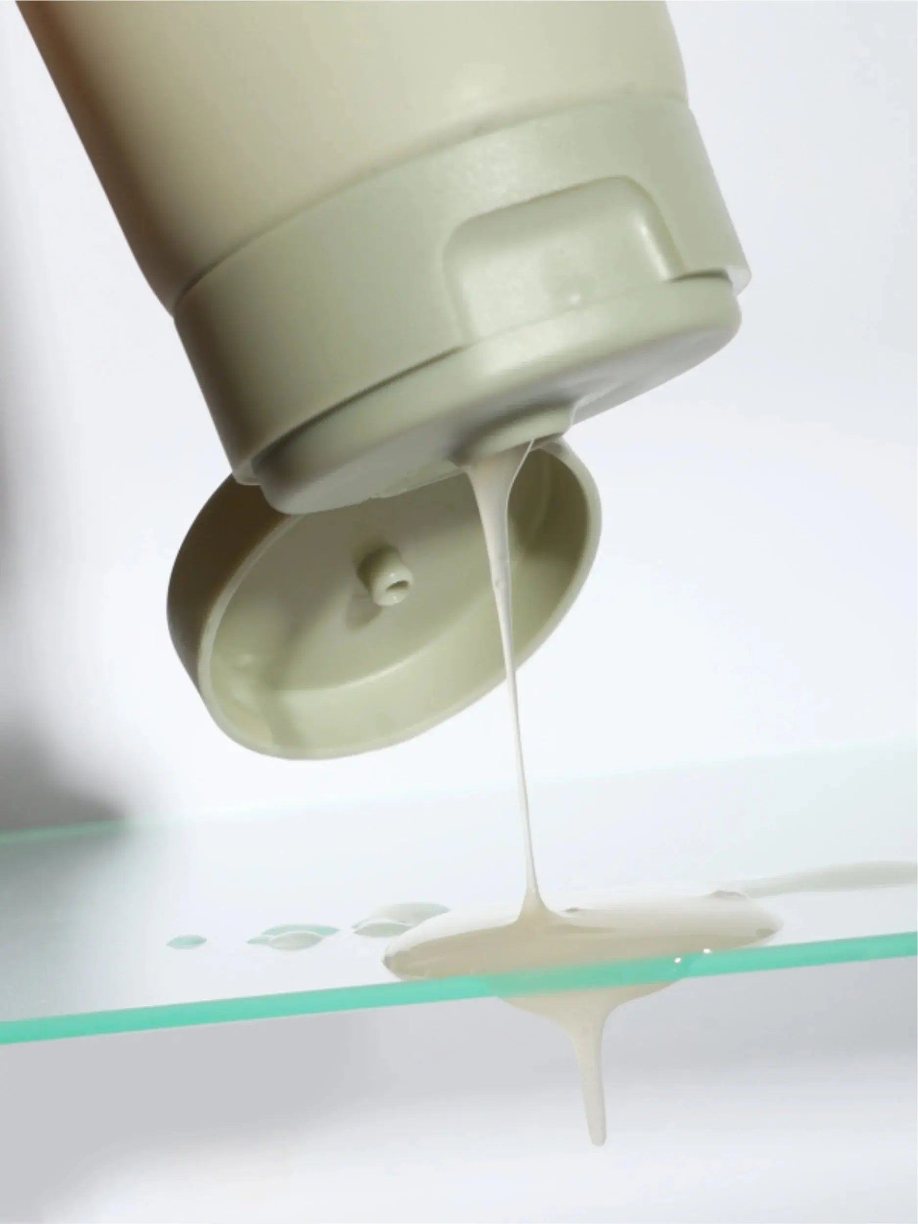 - Wet your hands and dispense a small amount of cleanser into your palm.