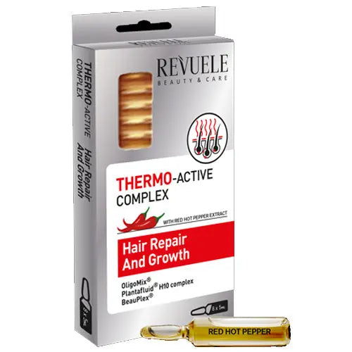 The Revuele Thermo Active Complex Hair Repair & Growth Ampoules is a set of ampoules, enriched with red pepper extracts that ensure that your damaged hair grows faster. The oil is rich in vitamins and minerals, so say goodbye to weak and damaged hair. After using these ampoules, your hair will be strong and healthy again!