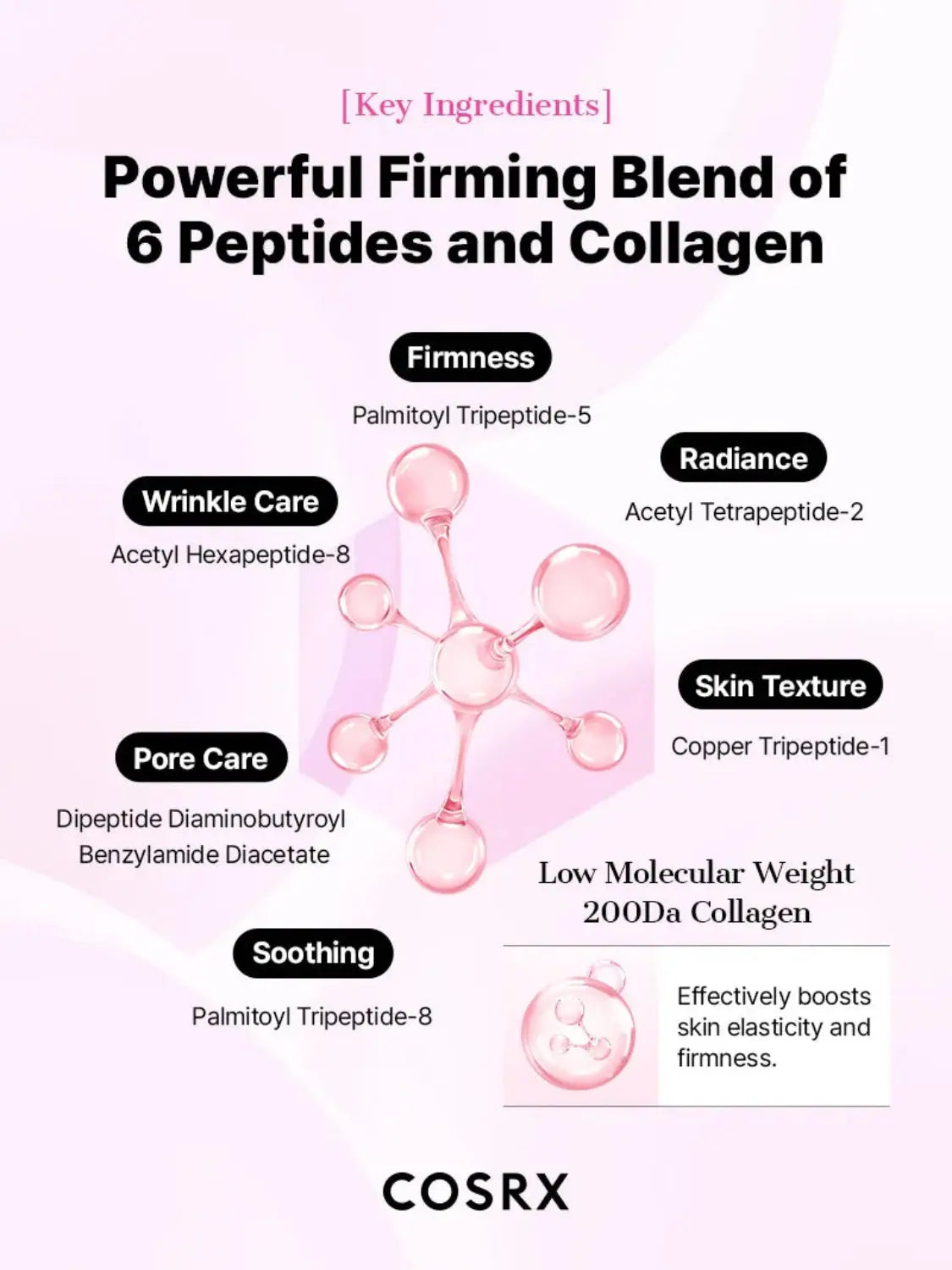 - contains 6 types of peptides for firming and anti-aging