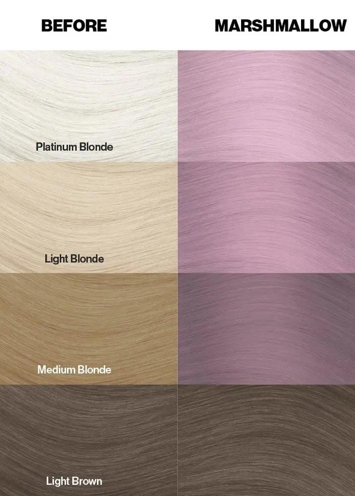 Crazy Color 64 Marshmallow is a dream shade for anyone who loves soft pastels with a romantic twist! This sweet pink hue with a subtle lilac undertone gives your hair a soft and refined glow without being overpowering. Perfect for a gentle makeover or to give your blonde locks a dreamy touch.