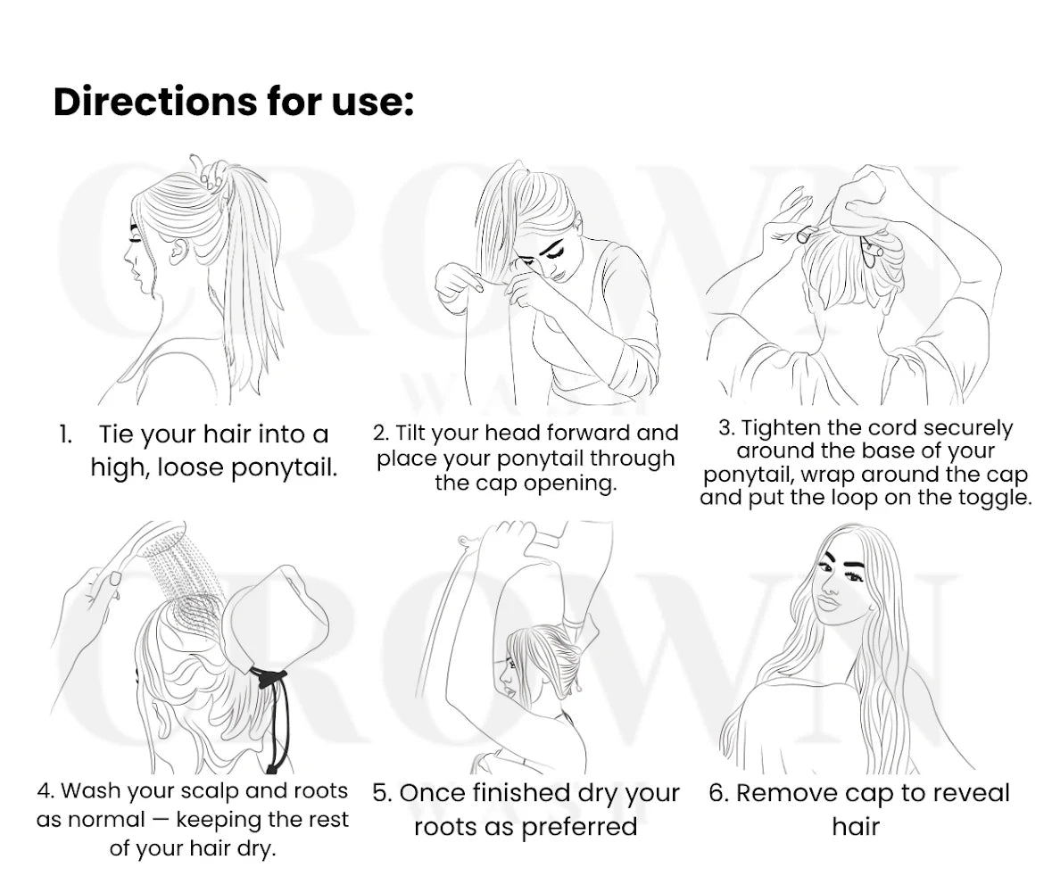 The Crown Wash Pony Cap is made from 100% polyester and designed for comfortable and effective use. It saves time, water, and your carefully styled hair. Perfect for busy mornings, quick touch-ups before a party, or while traveling. Bye bye wet ends, hello fresh roots, with zero hassle!