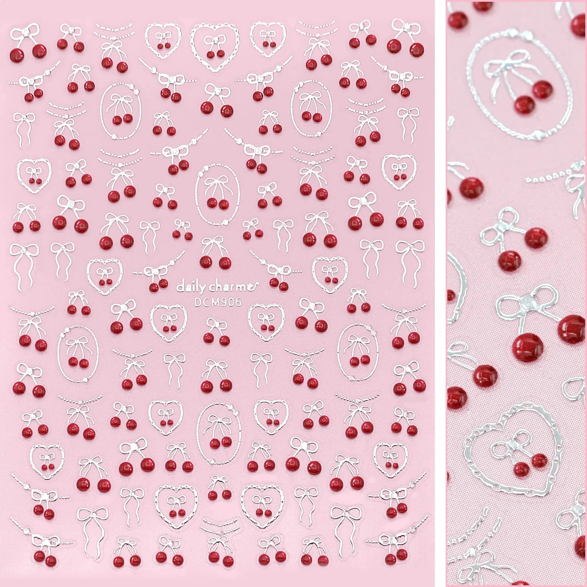 The Daily Charme 3D Embossed Nail Art Sticker Cherry Crush is everything you need for a juicy nail moment with vintage flair. This sticker sheet is filled with glossy red cherries, delicate bows, and romantic frames, perfect for that sweet-meets-sassy vibe. Whether you're heading to a milkshake date or just in a cute mood, these stickers will take your manicure to a flirty new level.