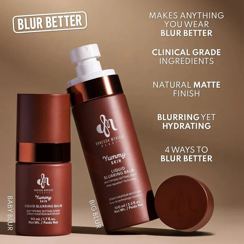 The Danessa Myricks Beauty Yummy Skin Liquid Blurring Setting Spray is the first setting spray you use like a powder, yes please! This innovative spray isn't applied as a mist, but pressed into the skin using a puff, sponge or brush for a targeted blur and mattifying finish without white cast or dryness. The result? A smooth, soft-focus effect as if you're wearing a filter, but in real life.