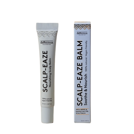 De Delhicious Scalp-Eaze Scalp Balm Amla Berry & Mango Butter is jouw redder in nood voor een droge, jeukende hoofdhuid. Deze intensief voedende pre-wash balm is verrijkt met krachtige Indiase, plantaardige ingrediënten zoals amla olie en mango boter om de hoofdhuid te kalmeren, hydrateren en te herstellen. Perfect als je last hebt van schilfers, irritatie of simpelweg wat extra verzorging zoekt voor je hoofdhuid én haarwortels.