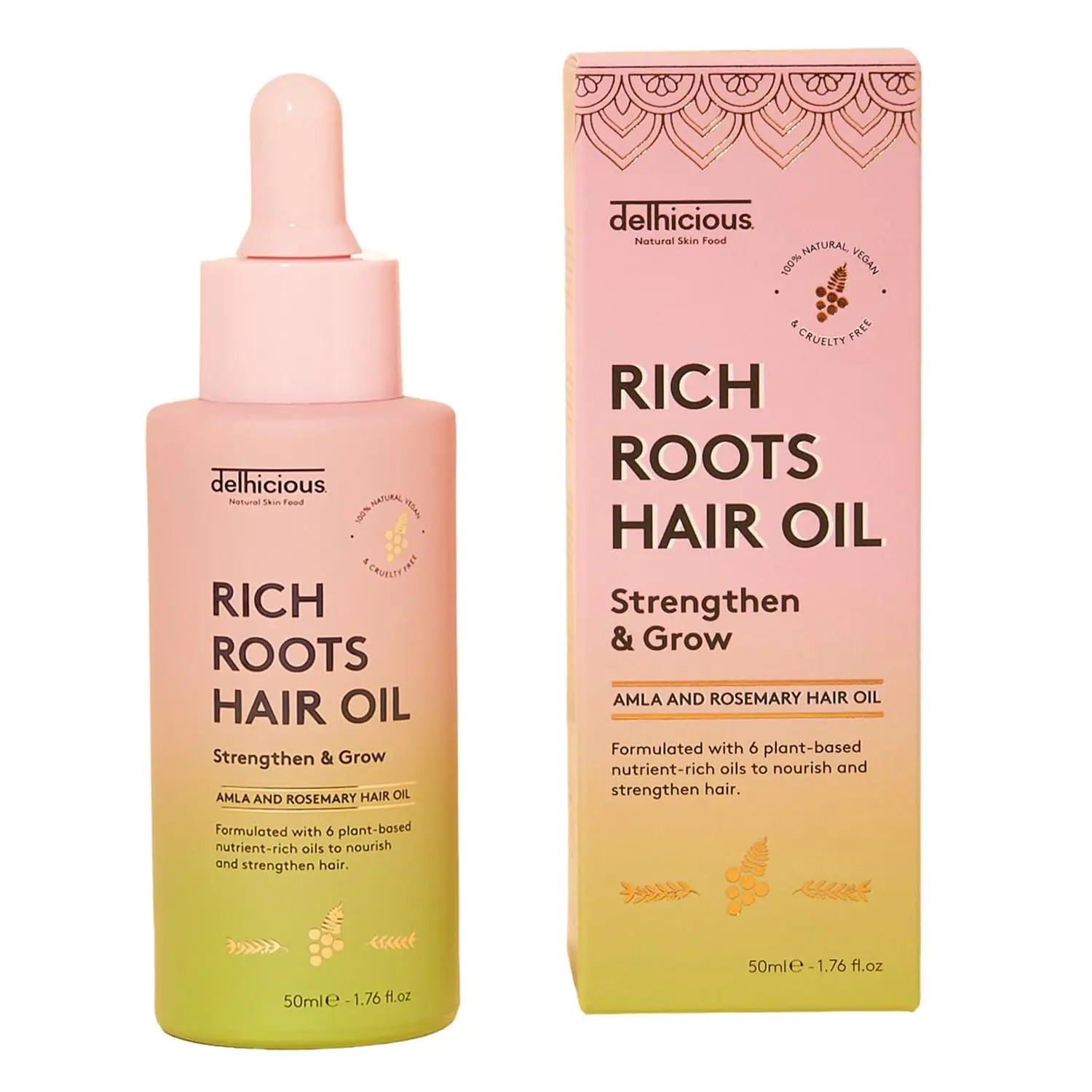 The Delhicious Rich Roots Hair & Scalp Oil Amla & Rosemary is a powerful Ayurvedic hair oil that elevates your weekly hair care routine. This formula combines six plant-based oils used for centuries in Indian tradition to strengthen the hair, deeply nourish, and stimulate growth.