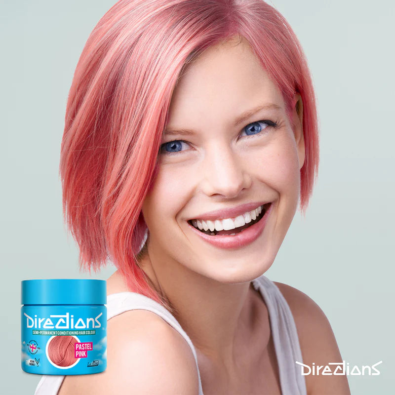 Directions Color #Pastel Rose is a semi-permanent hair dye in a soft rose shade that gives your hair a romantic and fresh pastel glow. This dreamy color is perfect for those who love subtle fantasy vibes with a touch of pink glamour.
