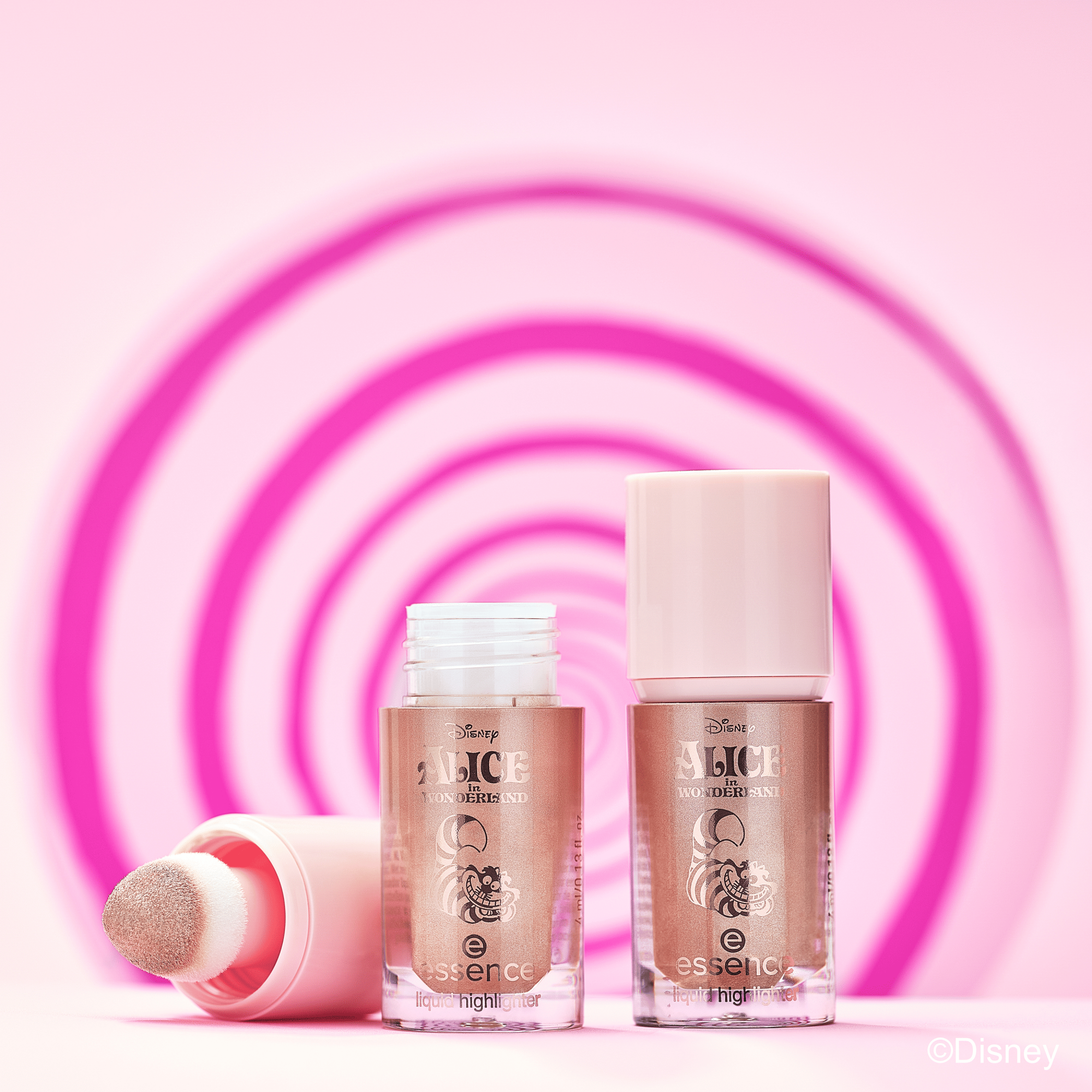 The Essence Disney Alice in Wonderland liquid highlighter 01 Grin & Glow Hole takes you on a magical glow trip! This liquid highlighter in an enchanting golden shade gives your skin a soft, radiant finish thanks to ultra-fine shimmer particles.