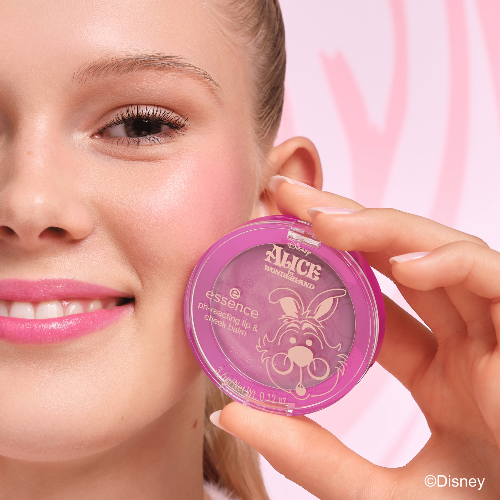 The Essence Disney Alice in Wonderland pH-reacting lip & cheek balm 01 Team Fun! is a magical multitasking product that makes your beauty routine extra special. This airy balm transforms on contact with your skin into a soft berry-pink shade with a subtle golden shimmer. Totally unique, as it reacts to your pH level!
