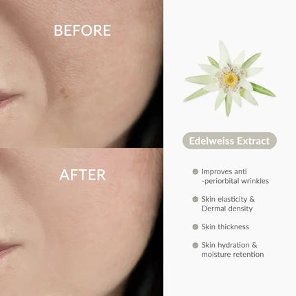 Water, Caprylic/Capric Triglyceride, Glycerin, Butylene Glycol, Cetearyl Alcohol, Polyglyceryl-3 Methylglucose Distearate, Cyclopentasiloxane, Polysorbate 60, Glyceryl Stearate, Palmitic Acid, 1,2-Hexanediol, Cyclohexasiloxane, Dimethicone, Benzyl Glycol, Stearic Acid, Sorbitan Sesquioleate , Ethylhexylglycerin, Carbomer, Arginine, Sodium Polyacrylate, Isopentyldiol, Tocopheryl Acetate, Allantoin, Propanediol, Dipotassium Glycyrrhizate, Polyglyceryl-4 Oleate, Disodium EDTA, Hydrolyzed Corn starch, Sucrose Palmitate, Dipropylene Glycol, Leontopodium Alpinum Extract, Lauric Acid, Hydroxydecyl Ubiquinone , Sucrose, Myristic Acid, Citrus Aurantium Bergamia (Bergamot) Fruit Oil, Anastatica Hierochuntica Extract, Butyrospermum Parkii (Shea Butter), Hydrolyzed Collagen, Silk Extract, Salmon Egg Extract, Beta-Glucan, Adansonia Digitata Fruit Extract, Hydrolyzed Glycosaminoglycans, Sodium Hyaluronate, Sodium Hyaluronate Crosspolymer, Copper Tripeptide-1, Hydrolyzed Hyaluronic Acid, Acetyl Hexapeptide-8, Hydroxypropyltrimonium Hyaluronate, Hyaluronic Acid, Sodium Acetylated Hyaluronate