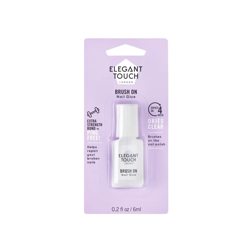 The Elegant Touch Brush On Nail Glue is your go-to solution for effortless false nail application or fixing a broken nail. Thanks to the handy brush, you can apply the glue just like nail polish – no mess, no stress!