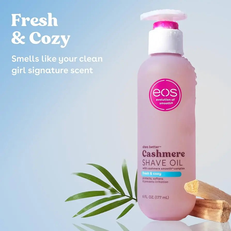 The EOS Shea Better Cashmere Shave Oil Fresh & Cozy is your new must-have for a silky smooth shaving routine. This luxurious shave oil hydrates and softens your skin while shaving, so you can enjoy an ultra-smooth result without irritation.