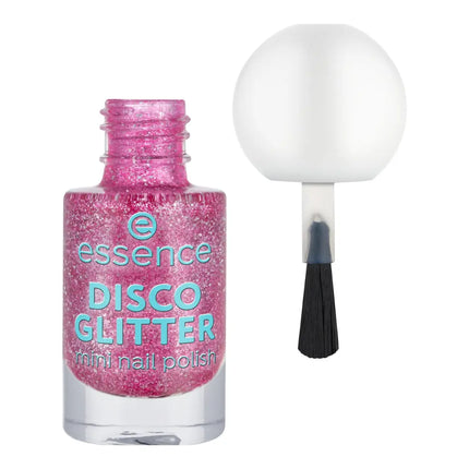 The Essence Disco Glitter Mini Nail Polish 08 Pink brings the ultimate disco vibes to your nails! This glittery warm pink nail polish creates a spectacular sparkle and is perfect for a night out. The playful mini packaging with a round cap makes this nail polish extra fun to carry around and turn every moment into a party.